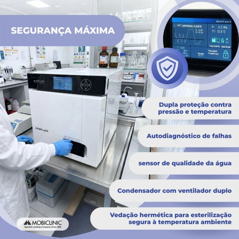 A autoclave esterilizadora Mobiclinic de 17 litros foi projetada para oferecer esterilização completa, profissional e segura, adaptando-se às demandas de múltiplos setores, como clínicas odontológicas, centros médicos, laboratórios, ortopedia ou clínicas veterinárias.