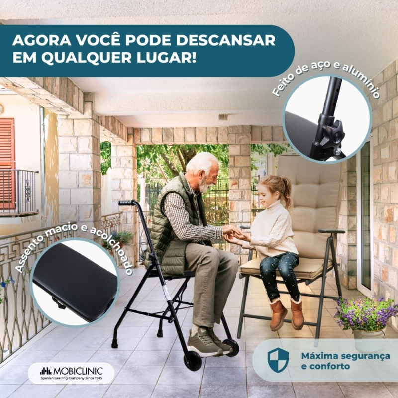 CONFORTÁVEL: Graças às suas alças anatômicas e assento acolchoado em PVC, não é apenas um andador ortopédico confortável para se movimentar, mas também para descansar.