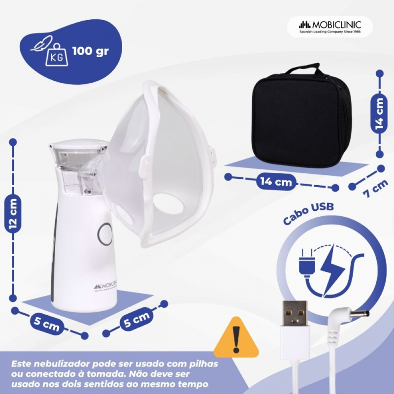 Nebulizador de malha | Portátil | 2 máscaras + bocal | Estojo de transporte | Sem fio e USB | Nebumobi1 | Mobiclinic