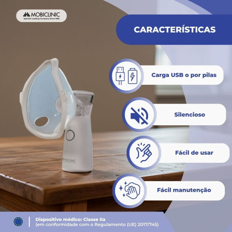 Nebulizador de malla | Portátil | 2 mascarillas + boquilla | Estuche transporte | Inalámbrico y USB | Nebumobi1 | Mobiclinic Abril . Funciona inalámbricamente y también se puede cargar por USB, lo que lo hace muy versátil y fácil de usar en cualquier lugar. 16/09/2025 |