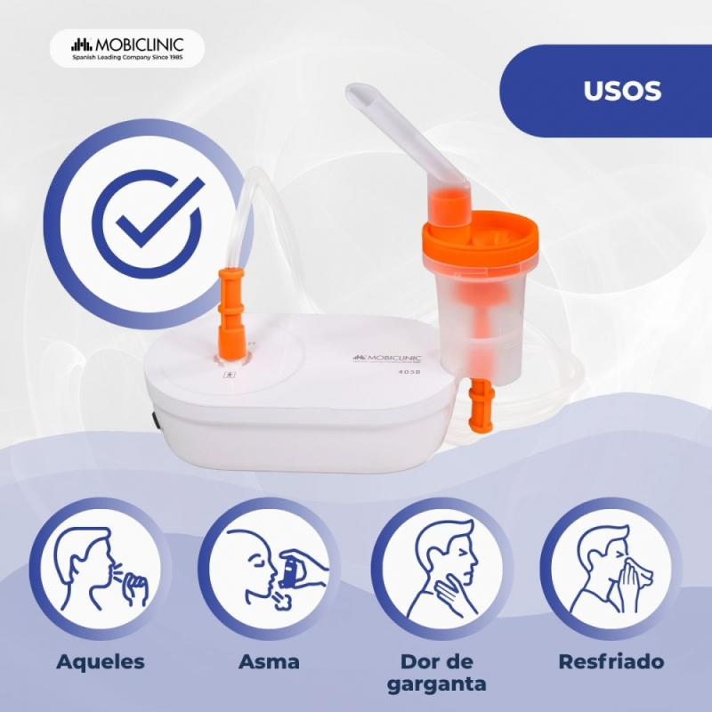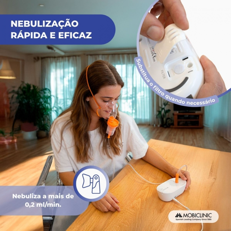 Nebulizador de Ar Comprimido | 2 Máscaras + Bocal | Silencioso | USB | Portátil e Leve | Nebumobi2 | Mobiclinic
