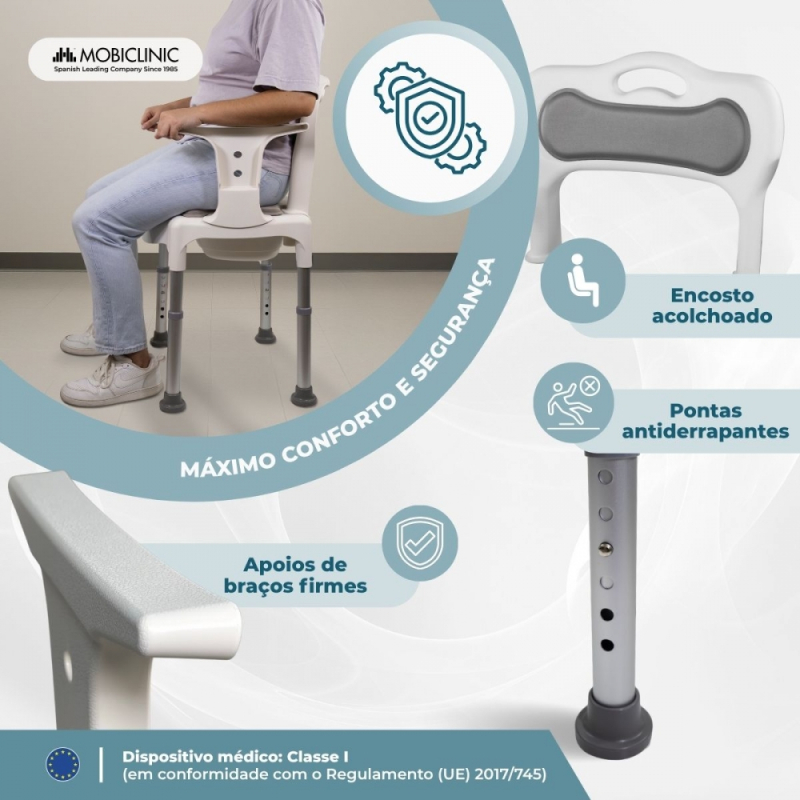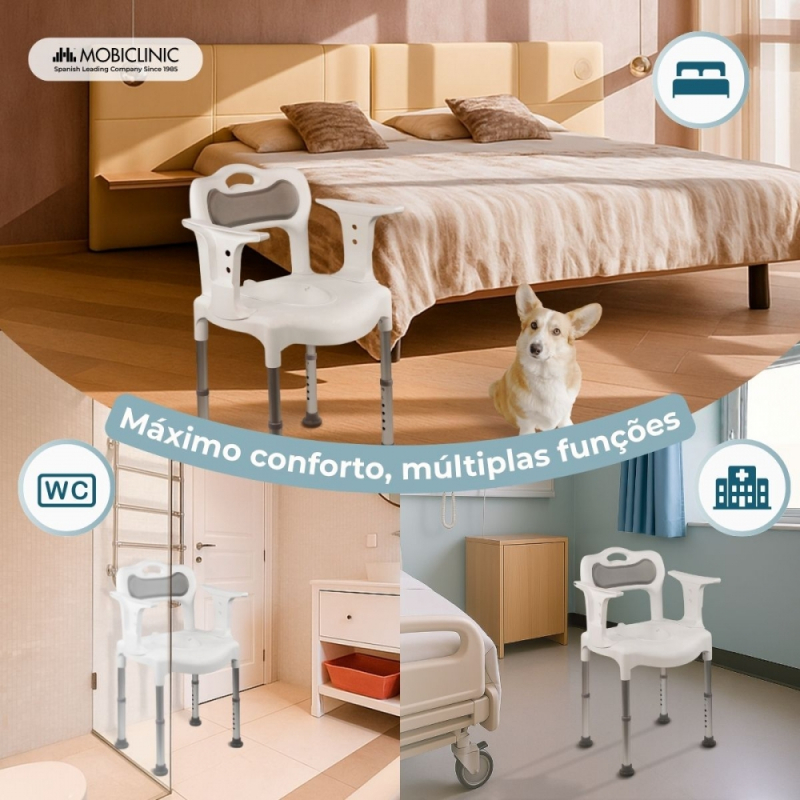 Cadeira Cômoda | Altura Ajustável | Assento e Encosto Acolchoados | Antiderrapante | 3500 ml | Guido | Mobiclinic