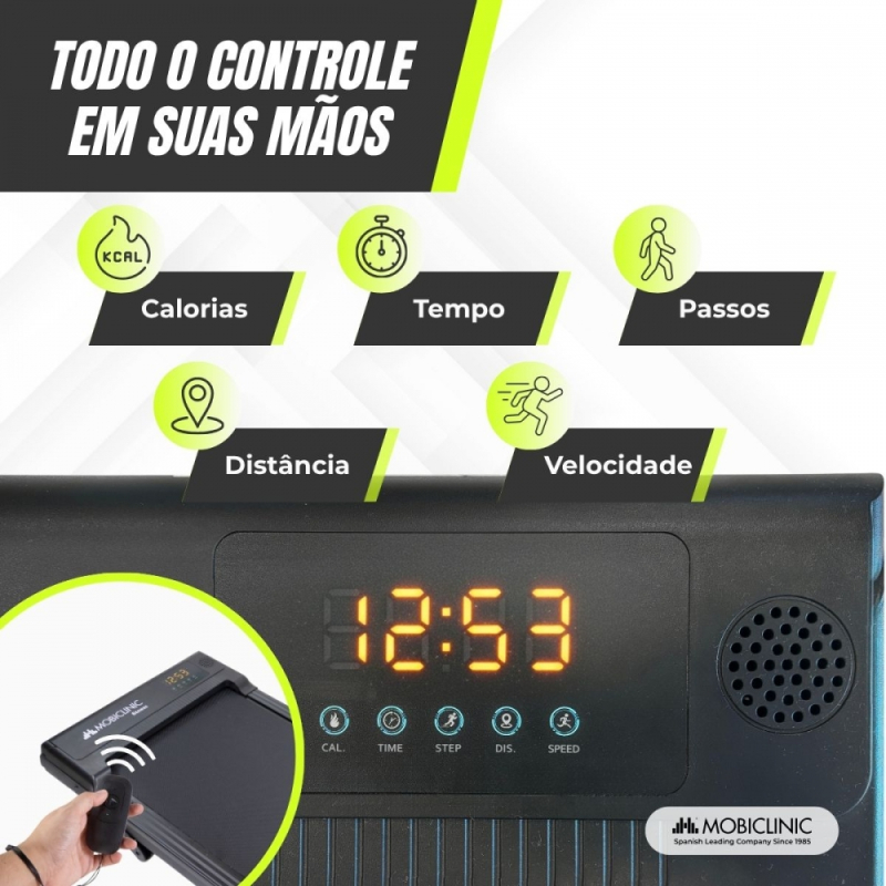 Esteira | Até 8 km/h | Display digital | Controle remoto | Rodas | Andy | Mobiclinic