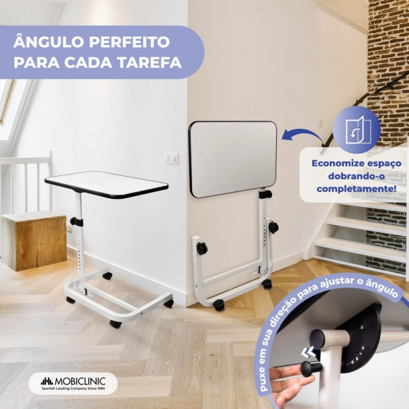 Mesa lateral ajustável | 9 alturas | Tampo inclinável | Dobrável | Rodízios com freio | Base C | Cumbre | Mobiclinic