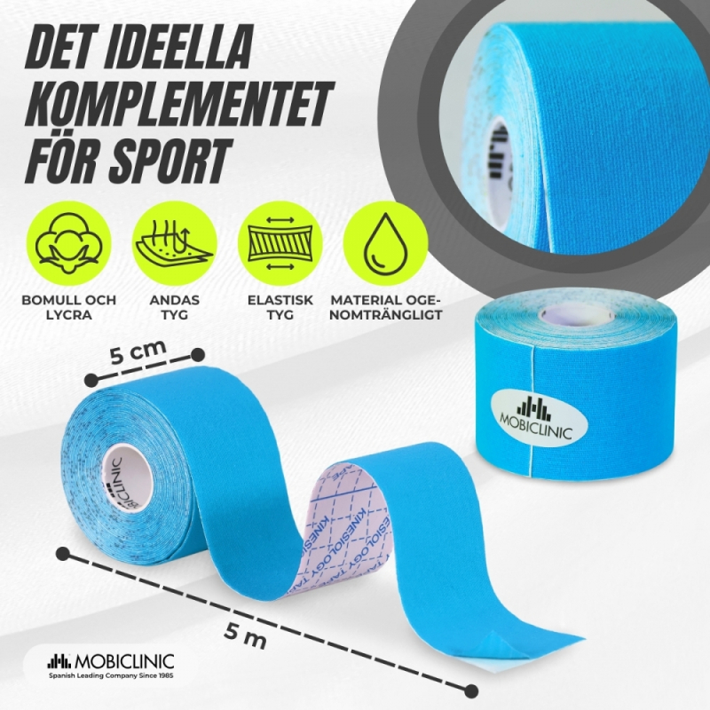 Mobiclinic, Kinesiotape, Modell Mobitape, Kinesiologiskt bandage, Neuromuskulärt bandage, Färg blå, Kinesiotape Roll