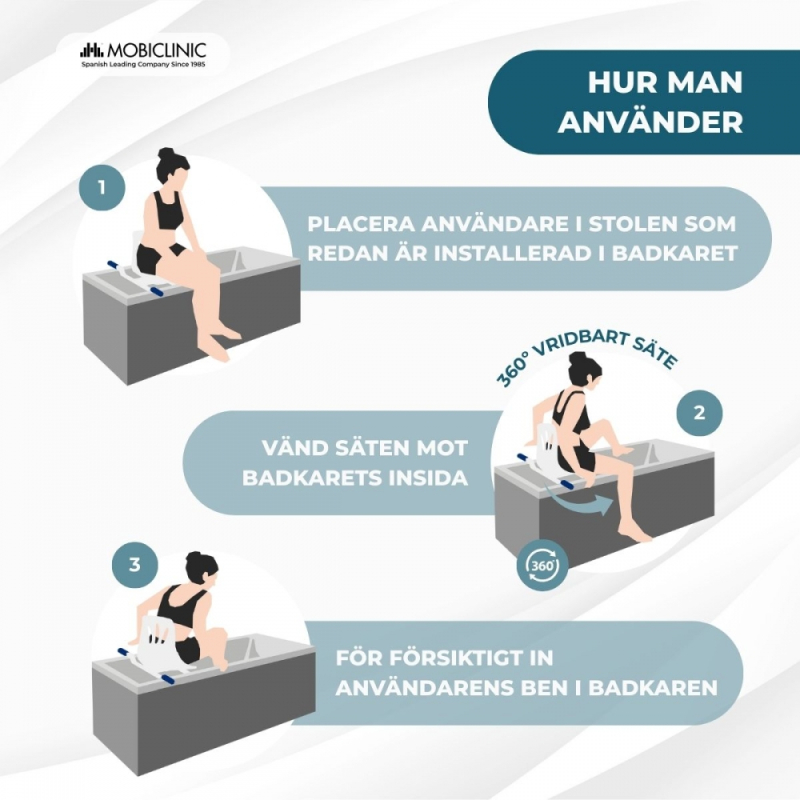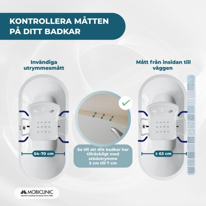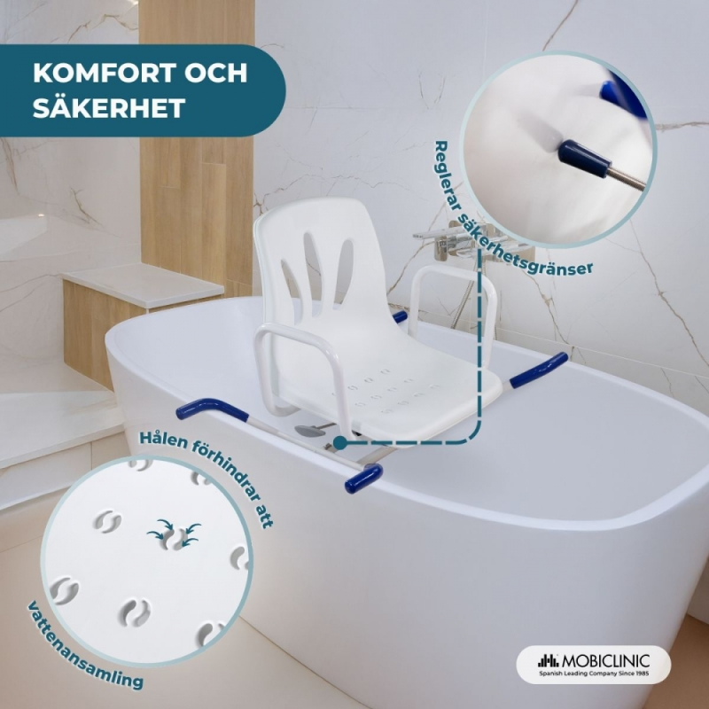 Snurrstol för badkar | Armstöd | Ryggstöd | Anatomisk | 360º | Rostfritt stål | Lago | Mobiclinic