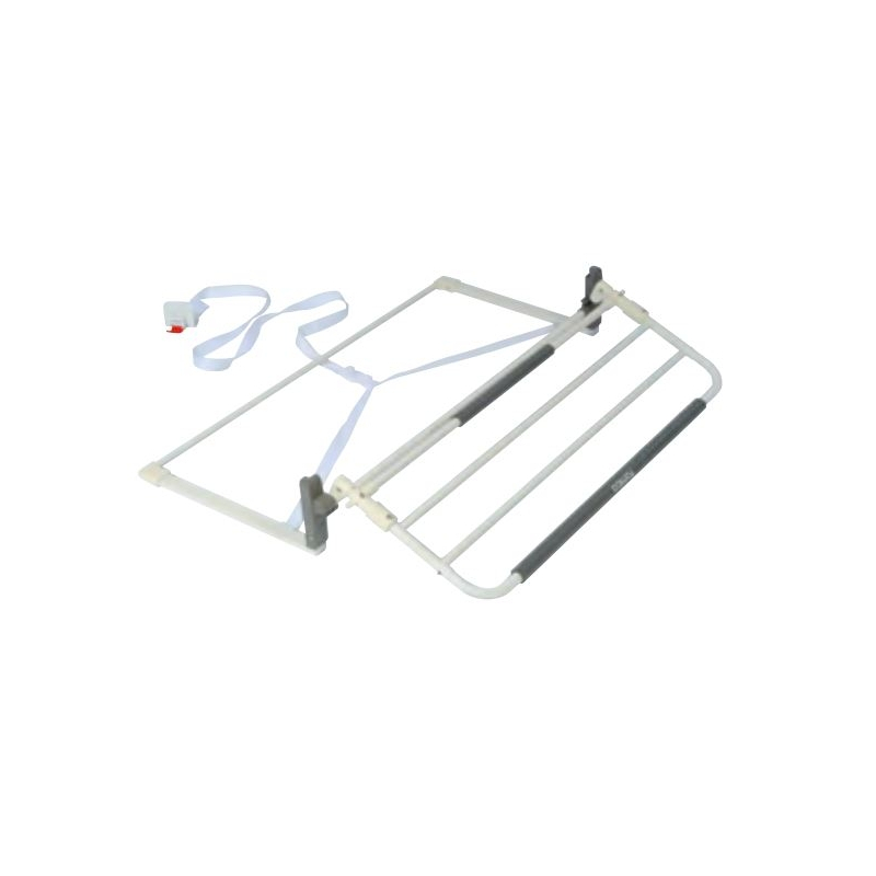 Vår Modulo sängstång gör det möjligt att effektivt säkra en person i sin säng. Stångstöden är placerade mellan boxfjädern och madrassen. De har extra remmar och stängningar för andra sidan av sängen.