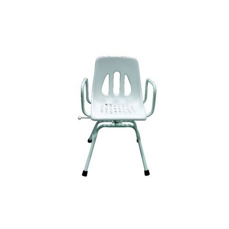 Denna praktiska duschstol kan vridas i duschkaret. Sparas plats är det lättare att sitta vänd mot dörren och sedan vända sig om. Struktur i epoxistål och sits med stor komfort.