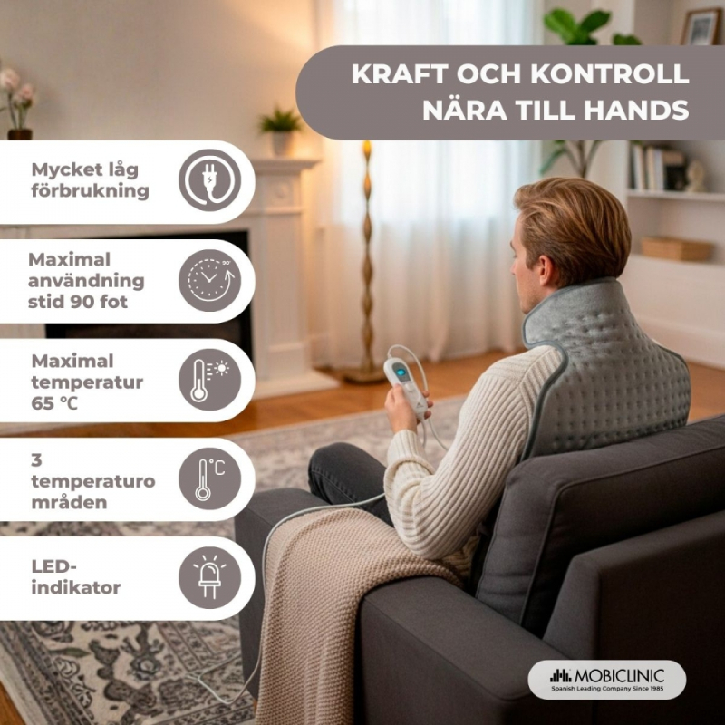 Rygg- och livmoderhalscancer kudde elektriska | 62x43 cm | 3 värme | Automatisk avstängning | Mobiclinic