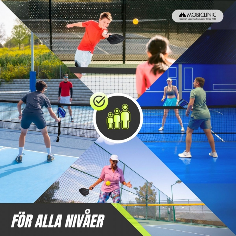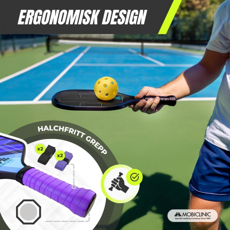 Mobiall Pickleball-setet är ett perfekt val för både nybörjare och erfarna spelare som söker en rolig och komplett fysisk aktivitet. Det innehåller fyra paddlar gjorda av glasfiber med en polymerkärna av bikakeform, ett material som erbjuder en kombination av kontroll och kraft under spelet. Dess ergonomiska handtag med halkfritt, absorberande grepp säkerställer ett bekvämt grepp.
