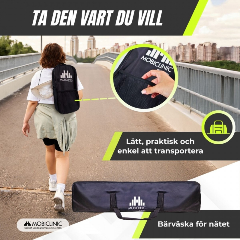 Pickleball-set | 4 racketar | 4 bollar | Nät med hjul | Bärväska | Halkfritt grepp | Mobilall | Mobiclinic