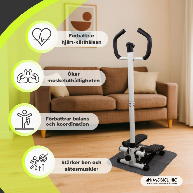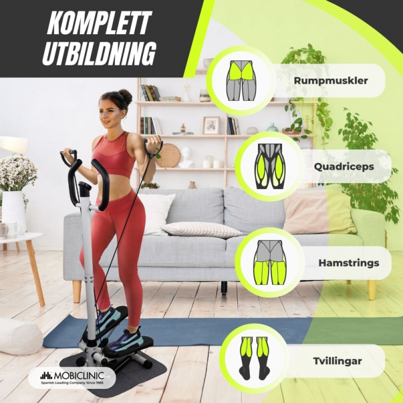 Step-Pro armstepmaskin är det bästa alternativet för dig som vill hålla dig i form hemma. Dess struktur gör att du kan träna ben, sätesmuskler och armar samtidigt, vilket kombinerar konditionsträning och muskeltoning.