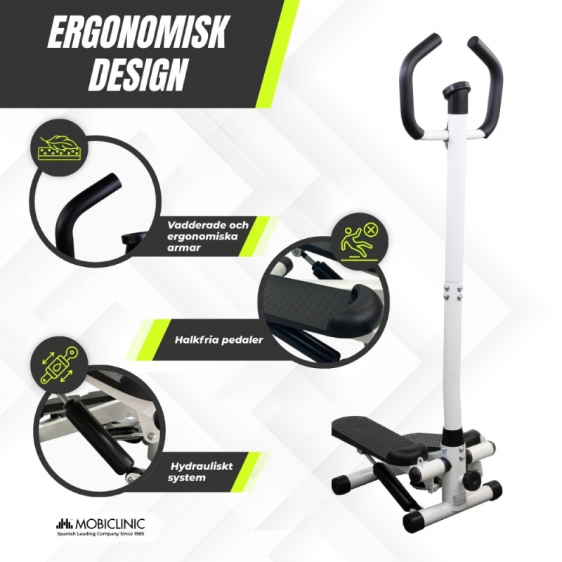 Stegmaskin med armar | Justerbar intensitet | Höjdjusterbar | LCD-skärm | Kompakt | Step-Pro | Mobiclinic
