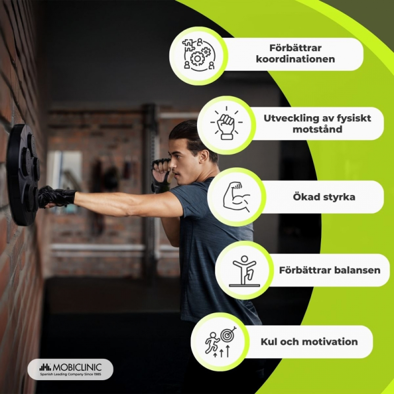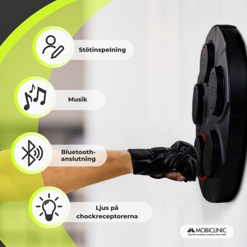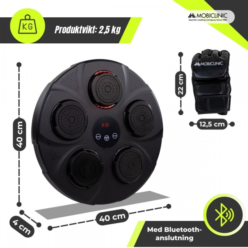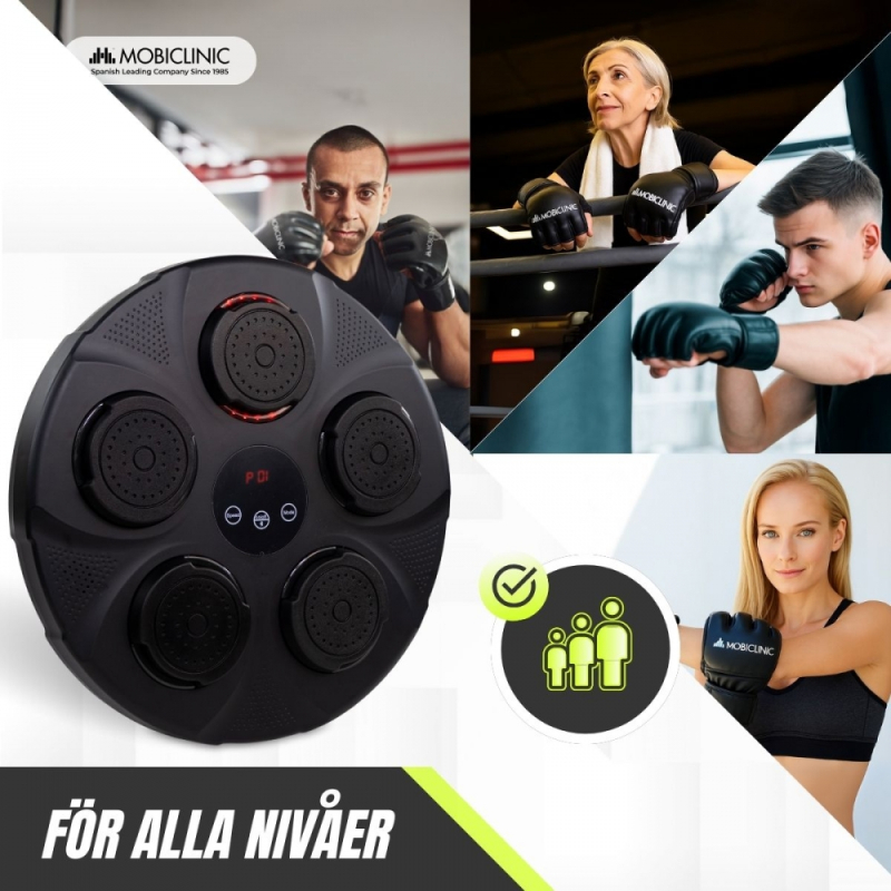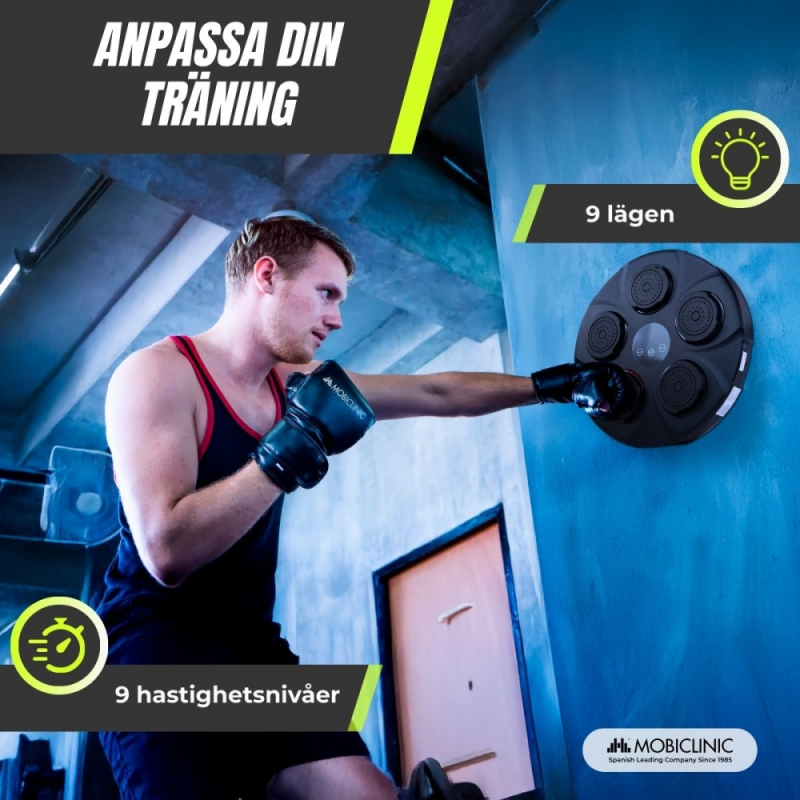 Boxningsmaskin | 9 lägen och hastigheter | Inkluderar handskar | Ljus | LED-skärm och Bluetooth | MusicKangu | Mobiclinic