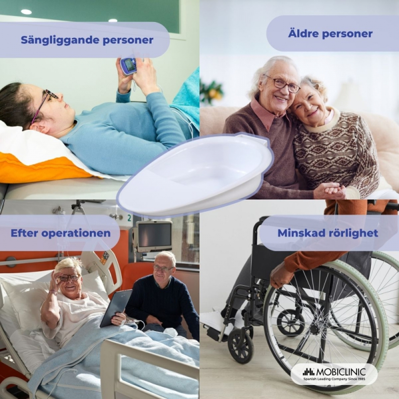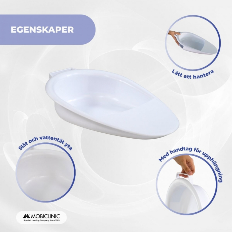 Seren-sängpannan är en praktisk, bekväm och hygienisk lösning för äldre, sängliggande patienter eller personer med begränsad rörlighet. Dess anatomiska design anpassar sig till kroppen och minskar obehag, vilket ger större stabilitet.