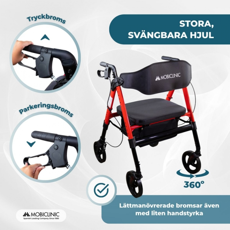 Bariatrisk rollator | Hopfällbar | Upp till 204 kg | Förstärkt aluminium | Bromsar | 360º hjul | Korg | Madeira | Mobiclinic