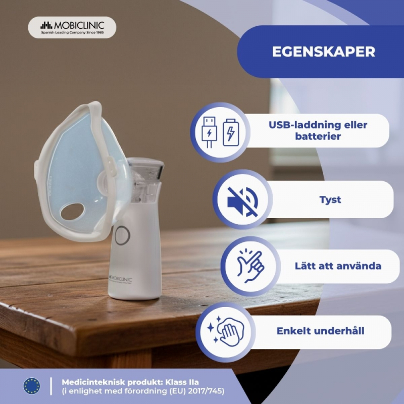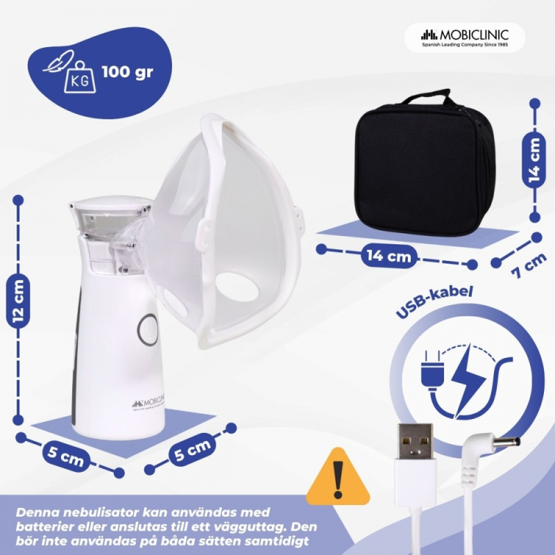 Nätnebulisator | Bärbar | 2 masker + munstycke | Bärväska | Trådlös och USB | Nebumobi1 | Mobiclinic