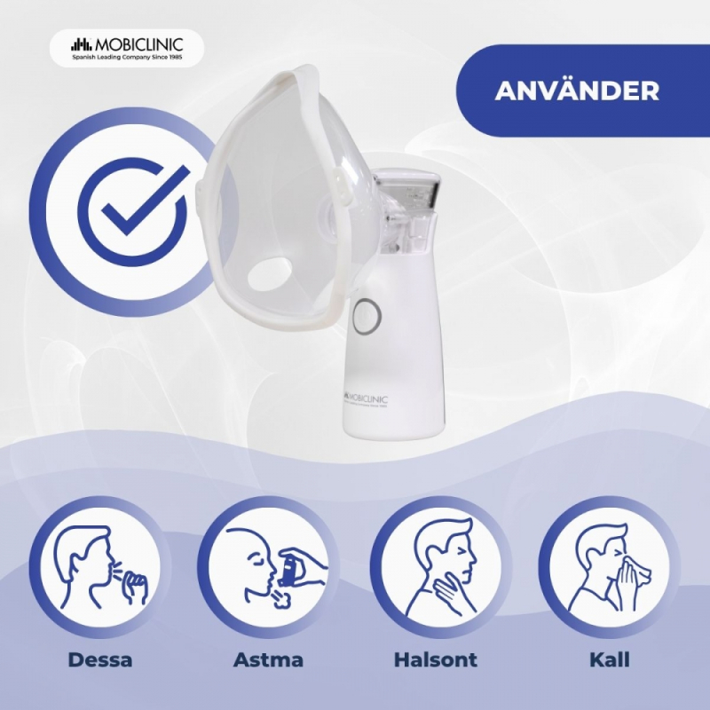 EFFEKTIV OCH SÄKER: Denna apparat är indicerad för behandling av luftvägssjukdomar som astma, KOL, bronkit och andra lungsjukdomar. Den erbjuder konstant nebulisering med en hastighet på <0,2 ml/min, vilket maximerar läkemedelstillförseln och främjar bekväm och enkel inandning.