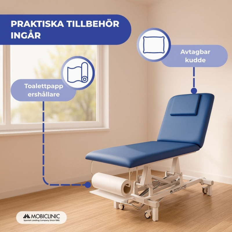 Den hydrauliska båren är en praktisk, robust och mångsidig lösning för kliniker, fysioterapicenter eller skönhetskliniker. Den är utformad för att ge maximal komfort för patienten och användarvänlighet för den professionella, och kombinerar ett höjdjusteringssystem med ett lutande ryggstöd.