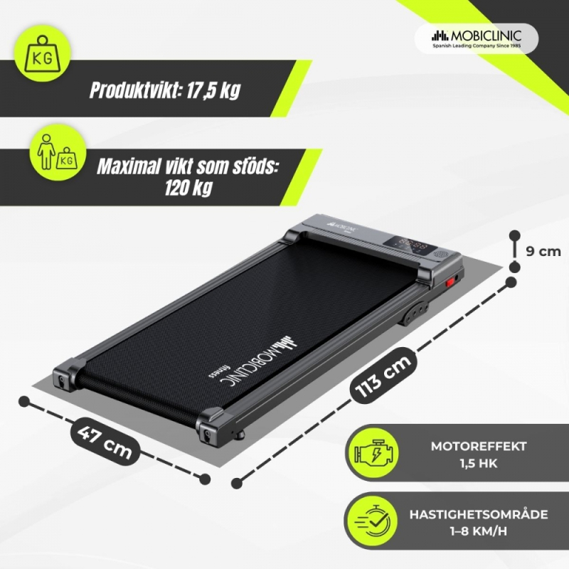 Löpband | Upp till 8 km/h | Digital display | Fjärrkontroll | Hjul | Andy |_ Mobiclinic