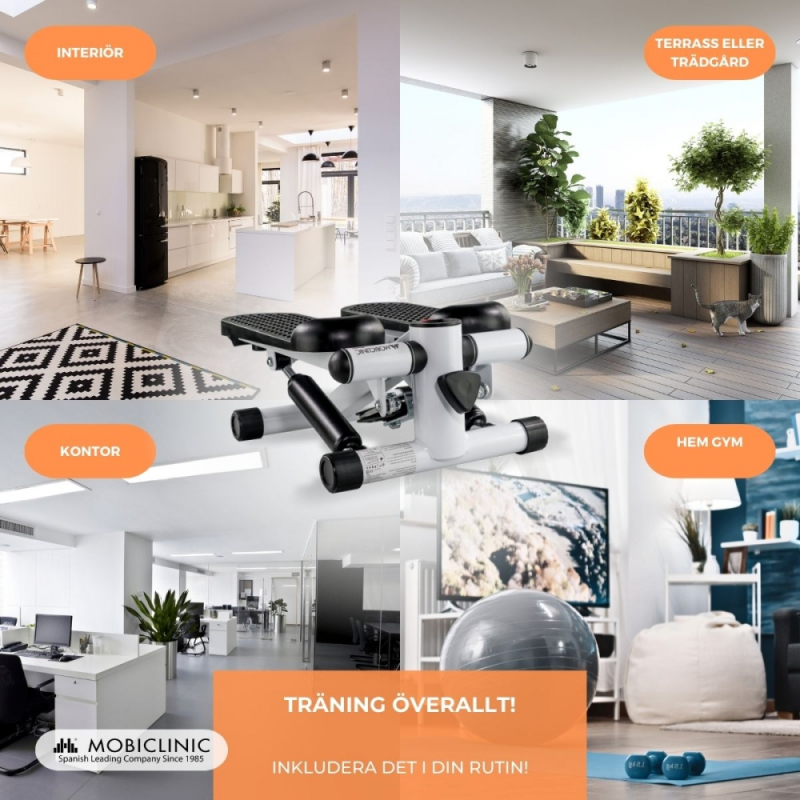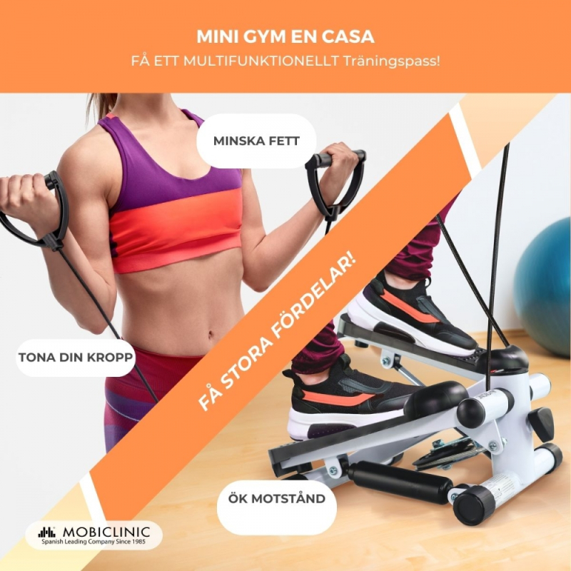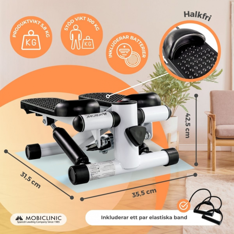 Stegmaskin | Resårband | Tonar ben och armar | LCD-skärm | Max. 100 kg | Stål | StepPlus | Mobiclinic